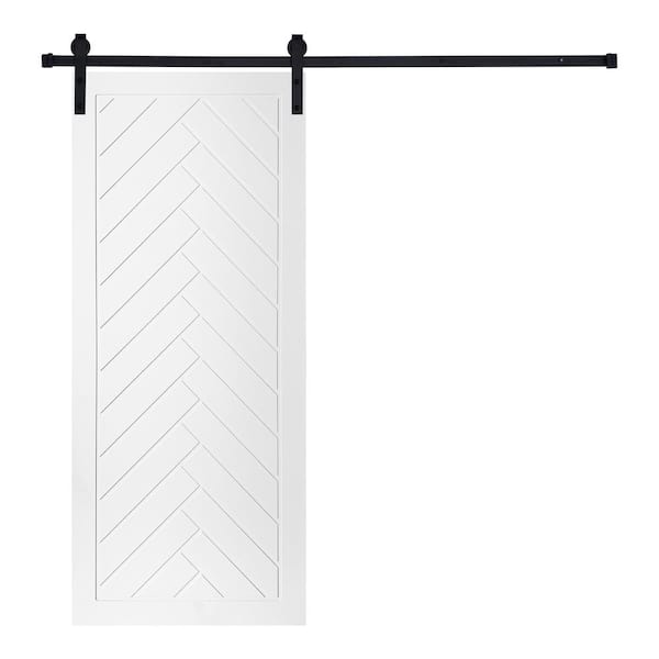 Double Modern Framed Herringbone Pattern 48 in. x 80 in. MDF Panel White Painted Sliding Barn Door with Hardware Kit