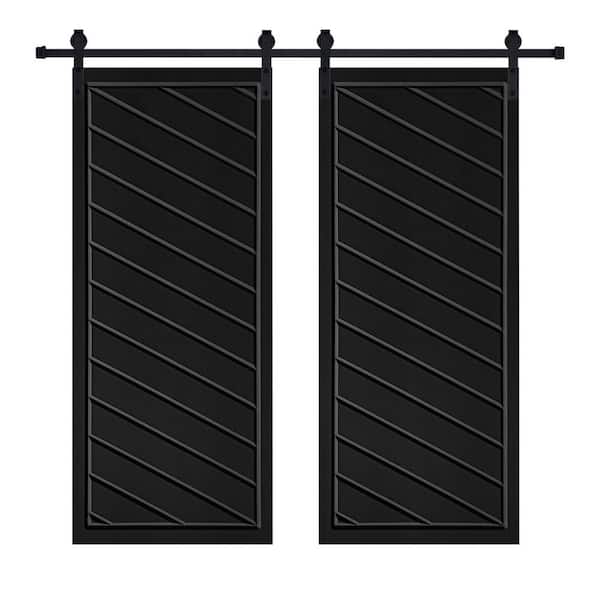 Double Modern Framed Twill 28 in. x 80 in. MDF Black Barn Sliding Door With Hardware kit