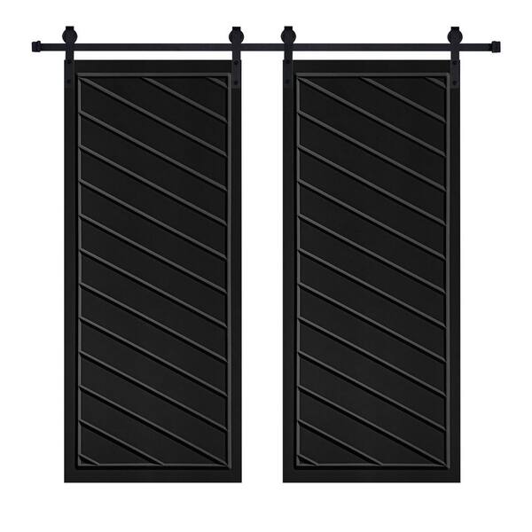 Double Modern Framed Twill 28 in. x 84 in. MDF Black Barn Sliding Door With Hardware kit
