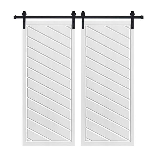 Double Modern Framed Twill 36 in. x 96 in. MDF White Barn Sliding Door With Hardware kit