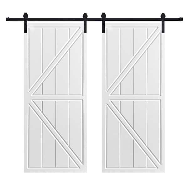 Double Modern K Frame 28 in. x 80 in. MDF White Barn Sliding Door With Hardware kit
