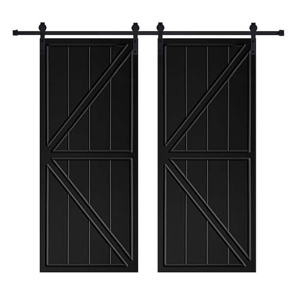 Double Modern K Frame 28 in. x 84 in. MDF Black Barn Sliding Door With Hardware kit