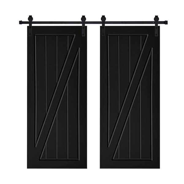 Double Modern Z Frame 21 in. x 80 in. MDF Black Barn Sliding Door With Hardware kit