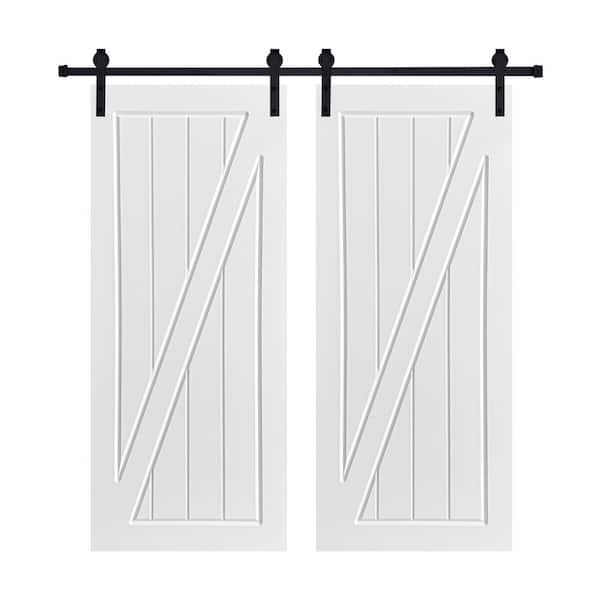 Double Modern Z Frame 24 in. x 84 in. MDF White Barn Sliding Door With Hardware kit