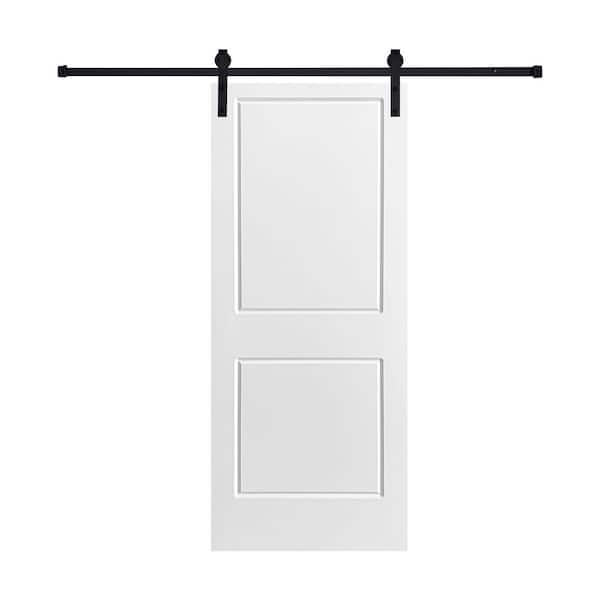 Modern 2-Panel 21 in. x 80 in. MDF White Barn Sliding Door With Hardware kit