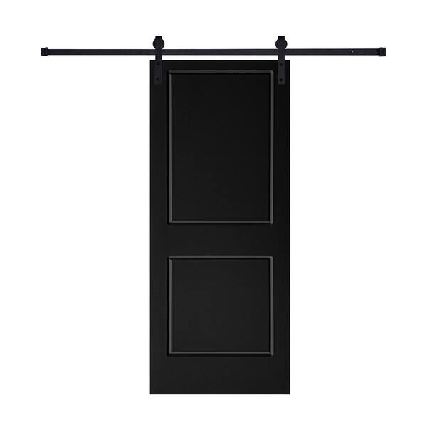 Modern 2-Panel 21 in. x 84 in. MDF black Barn Sliding Door With Hardware kit
