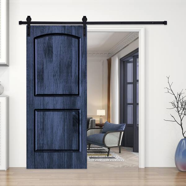 Modern 2 Panel-Roman Designed 80 in. x 24 in. Wood Panel Royal Navy Painted Sliding Barn Door with Hardware Kit