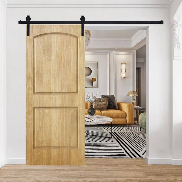 Modern 2 Panel-Roman Designed 80 in. x 28 in. Wood Panel Mother Nature Painted Sliding Barn Door with Hardware Kit
