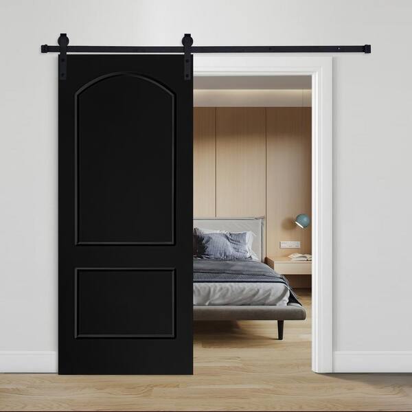 Modern 2- Panel Roman Designed 84 in. x 30 in. MDF Panel Black Painted Sliding Barn Door with Hardware Kit