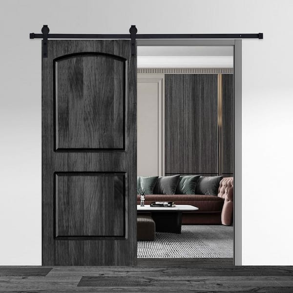 Modern 2 Panel-Roman Designed 84 in. x 30 in. Wood Panel Ebony Painted Sliding Barn Door with Hardware Kit