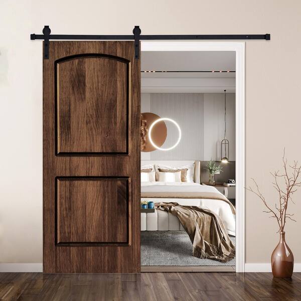 Modern 2-Panel-Roman Designed 84 in. x 32 in. Wood Panel Dark Walnut Painted Sliding Barn Door with Hardware Kit
