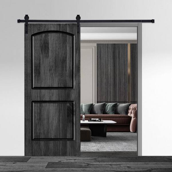Modern 2 Panel-Roman Designed 96 in. x 36 in. Wood Panel Ebony Painted Sliding Barn Door with Hardware Kit