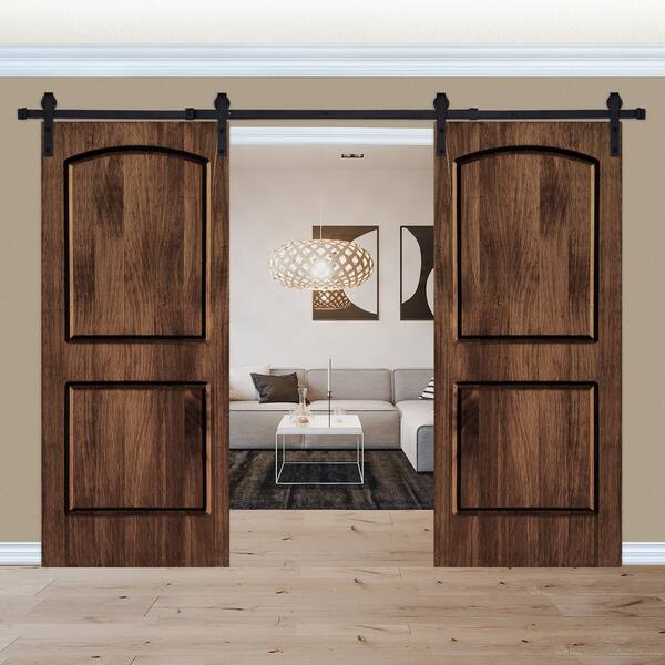 Modern 2Panel-Roman Designed 64 in. x 80 in. Wood Panel Dark Walnut Painted Double Sliding Barn Door with Hardware Kit