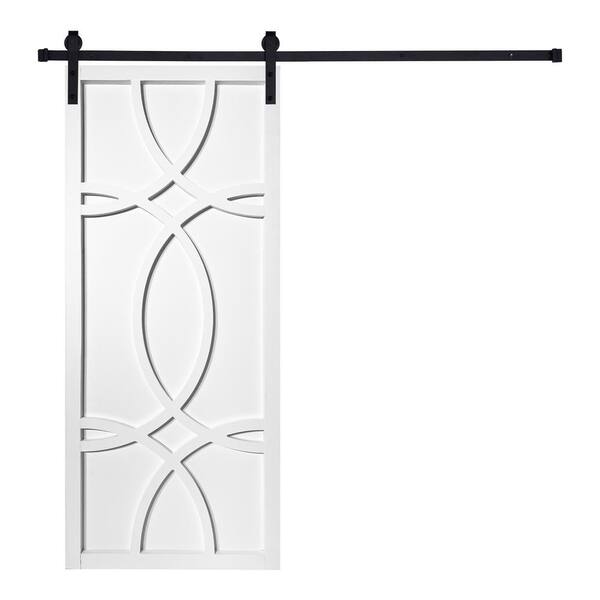 Modern 3D Yang 36 in. x 80 in. MDF Panel White Painted Sliding Barn Door with Hardware Kit