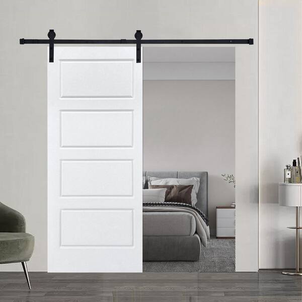 Modern 4 Panel 24 in. x 80 in. MDF White Sliding Barn Door with Hardware Kit