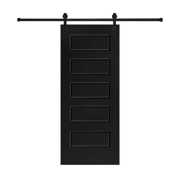 Modern 5-Panel 24 in. x 80 in. MDF Black Barn Sliding Door With Hardware kit