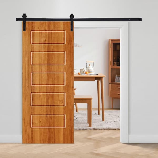Modern 5 Panel Designed 72 in. x 84 in. Wood Panel Colony Maple Painted Double Sliding Barn Door with Hardware Kit