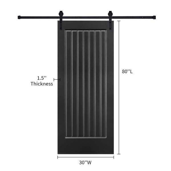 Modern 7-Panel 30 in. x 80 in. MDF Black Barn Sliding Door with Hardware Kit