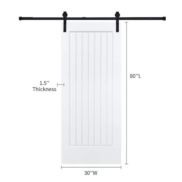 Modern 7-Panel 30 in. x 80 in. MDF White Barn Sliding Door with Hardware Kit