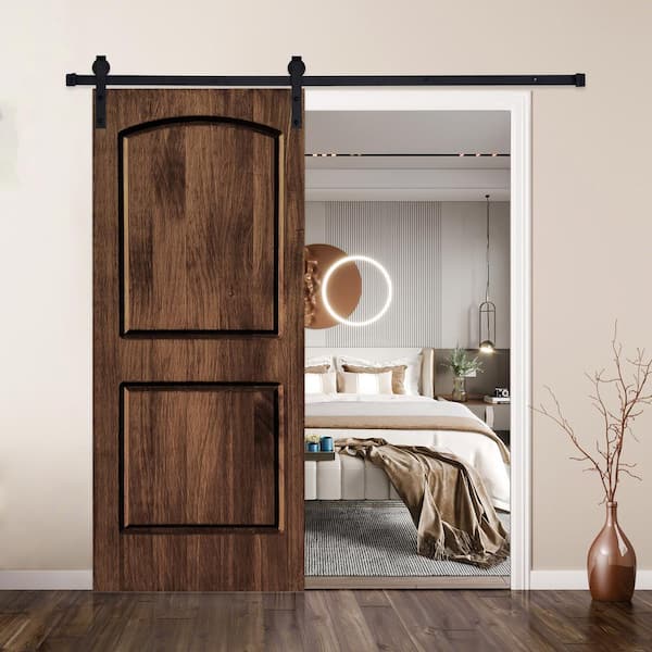 Modern 84 in. x 24 in. 2-Panel Dark Walnut Painted Wood Roman Designed Sliding Barn Door with Hardware Kit
