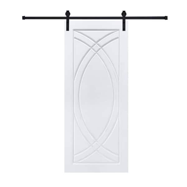 Modern Art Panel 28 in. x 80 in. MDF White Barn Sliding Door With Hardware kit