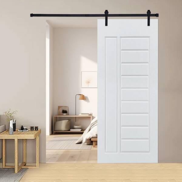 Modern Design 21 in. x 84 in. MDF Panel White Sliding Barn Door with Hardware Kit