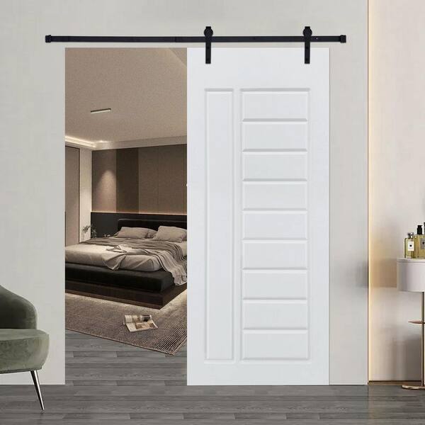 Modern Design 28 in. x 80 in. MDF Panel White Sliding Barn Door with Hardware Kit