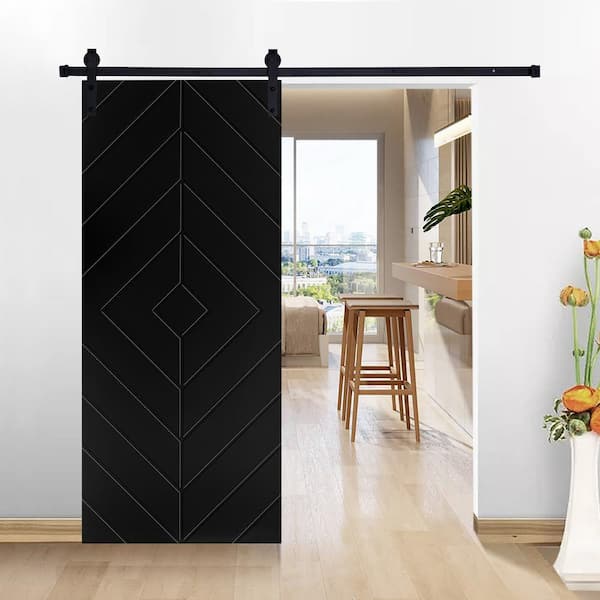 Modern Diamond Designed 96 in. x 42 in. MDF Panel Black Painted Sliding Barn Door with Hardware Kit