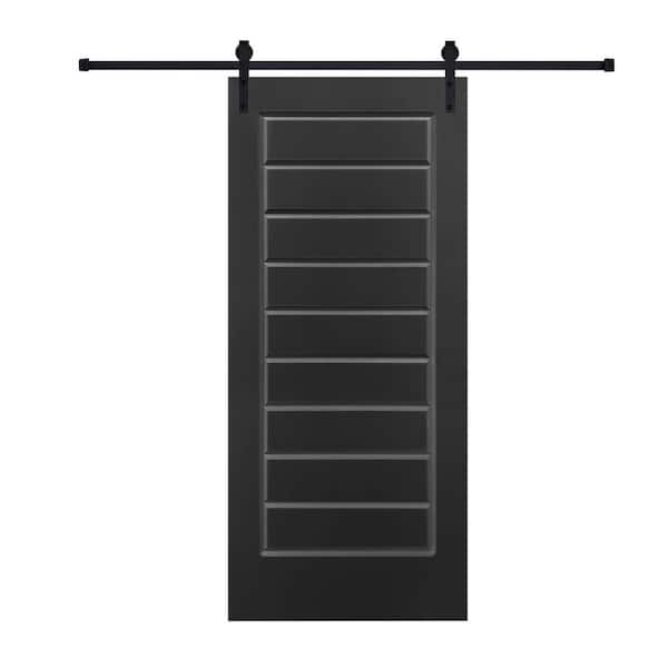 Modern Eight Panel 21 in. x 84 in. MDF Black Barn Sliding Door With Hardware kit