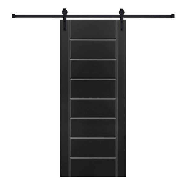 Modern Eight Panel 30 in. x 80 in. MDF Black Barn Sliding Door With Hardware kit