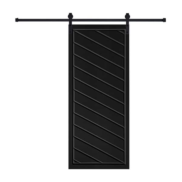 Modern Framed Twill 21 in. x 84 in. MDF Black Barn Sliding Door With Hardware kit