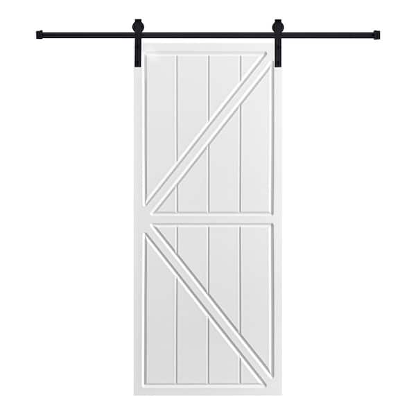 Modern K Frame 21 in. x 84 in. MDF White Barn Sliding Door With Hardware kit