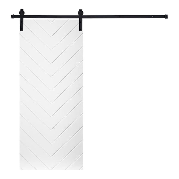 Modern V-Shape Pattern 24 in. x 84 in. MDF Panel White Painted Sliding Barn Door with Hardware Kit