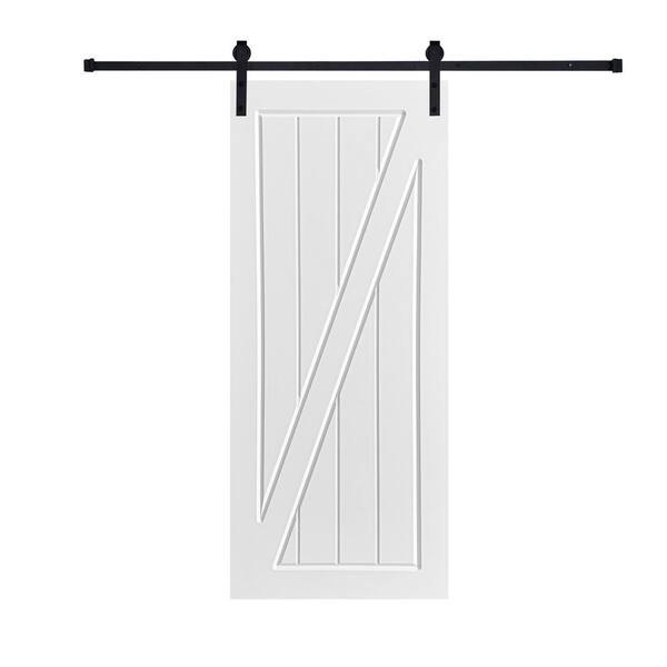 Modern Z Frame Panel 24 in. x 84 in. MDF White Barn Sliding Door With Hardware kit