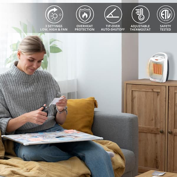 10.2 in. Electric Portable Room Ceramic Heater with Handle, Overheat Protection, Tip Over Auto Shutoff, 1500-Watt