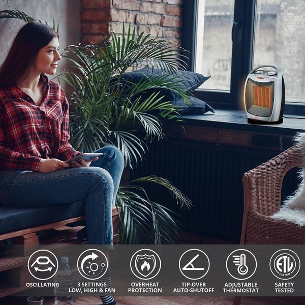 1500-Watt 10.2 in. Electric Oscillating Room Ceramic Heater with Handle, Overheat Protection, Tip Over Auto Shutoff