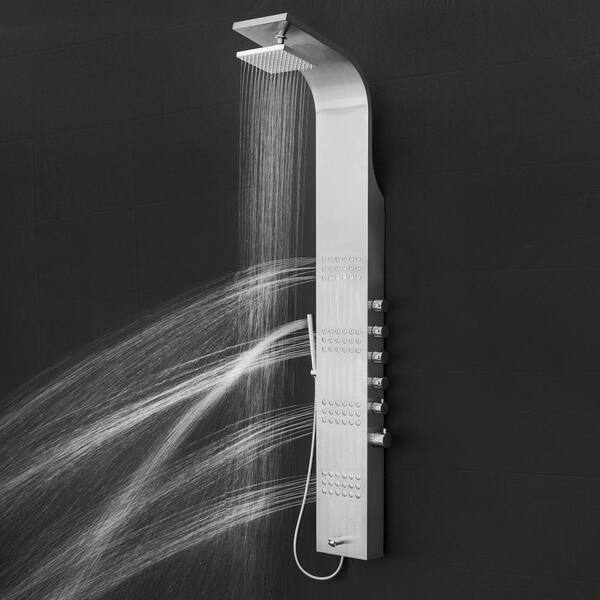 59 in. 4-Jet Shower Panel System in Stainless Steel with Thermostatic Controls, Rainfall Shower Head and Handshower Wand