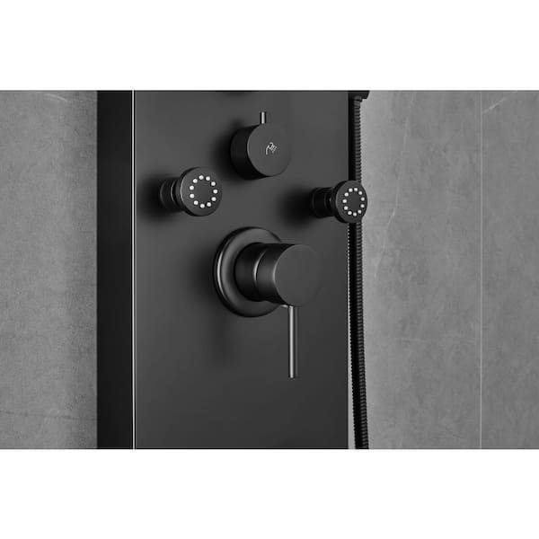 65 in. 8-Jet Rainfall Shower Panel System with Waterfall Shower Head and Shower Wand in Black Painted Stainless Steel
