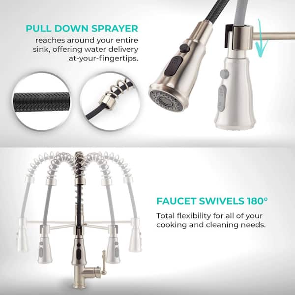 Commercial-Style Spring Neck Single-Handle Pull-Down Sprayer Kitchen Faucet With 2-function Sprayer in Brushed Nickel