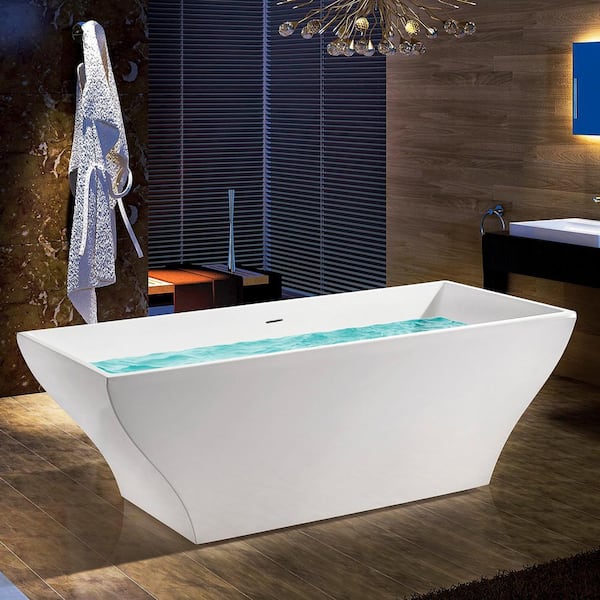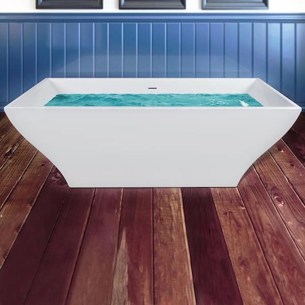 Freestanding 53.9 in. Fiberglass FlatBottom Non-Whirlpool Bathtub in Glossy White