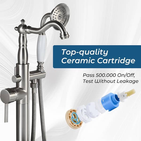 1-Handle Floor Mount Freestanding Claw Foot Tub Faucet Bathtub Filler with Hand Shower in Brushed Nickel
