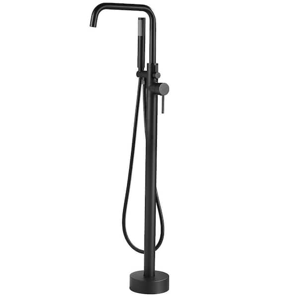 1-Handle Floor Mount Freestanding Tub Faucet Bathtub Filler with Hand Shower in Matte Black