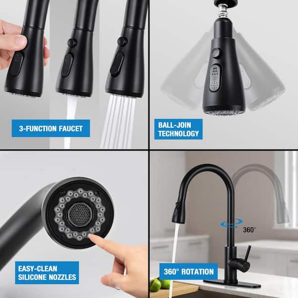 1-Handle Pull Down Sprayer Kitchen Faucet Single Level Stainless Steel Kitchen Sink Faucets in Matte Black