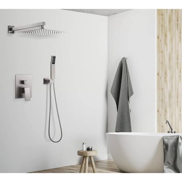 12 in. Single Handle 2-Spray Shower Faucet 2.5 GPM with Pressure Balance, Anti Scald in. Brushed Nickel
