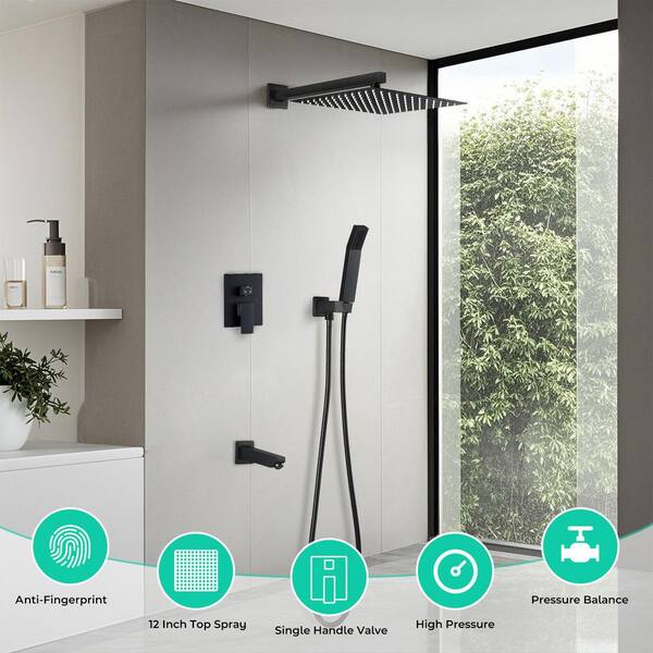 12 in. Single Handle 3-Spray Shower Faucet 2.0 GPM with Spout with 360° Swivel in Matte Black