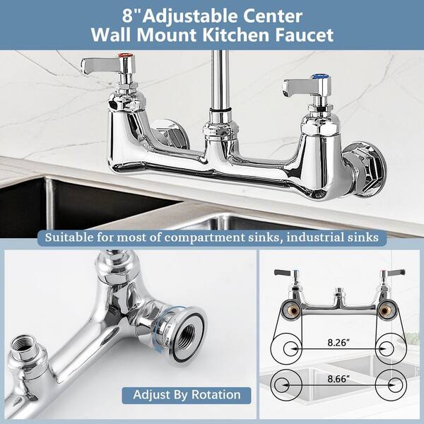 21. in Commercial Restaurant 360° Spout Swivel Pull Down Sprayer Kitchen Faucet Double Handle in Polished Chrome