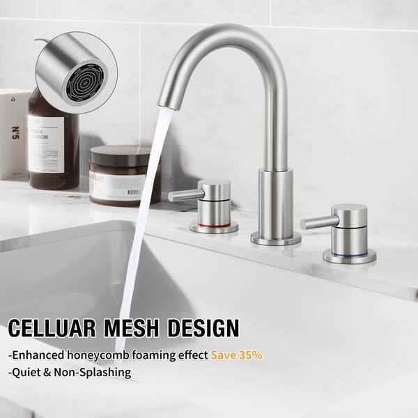 8 in. Widespread 2-Handle High Arc Bathroom Faucet and 360-Degree Swivel Spout in Brushed Nickel