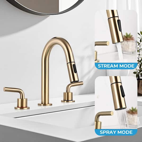 8 in. Widespread Double Handle Bathroom Faucet 3 Hole Pull Down Sink Faucet with Pop-Up Drain in Brushed Gold