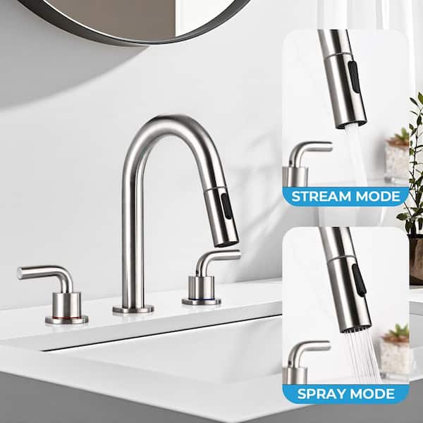 8 in. Widespread Double Handle Bathroom Faucet 3 Hole Pull Down Sink Faucet with Pop-Up Drain in Brushed Nickel