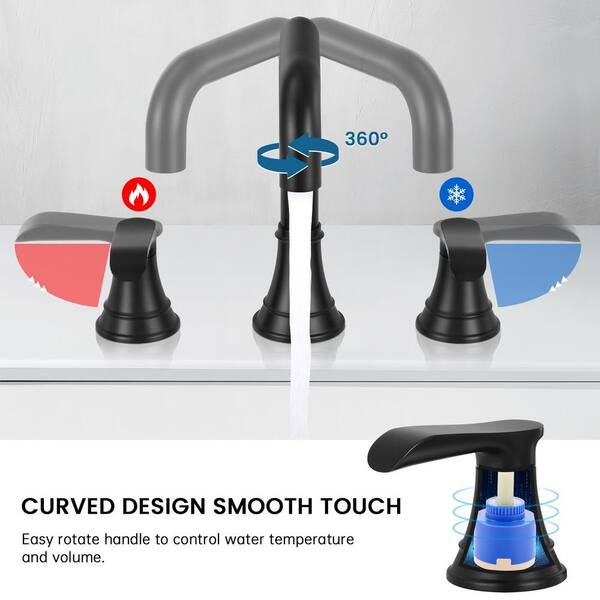 8 in. Widespread Double-Handle Bathroom Faucet with Pop-Up Drain in Matte Black (2-pack)